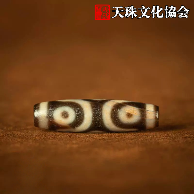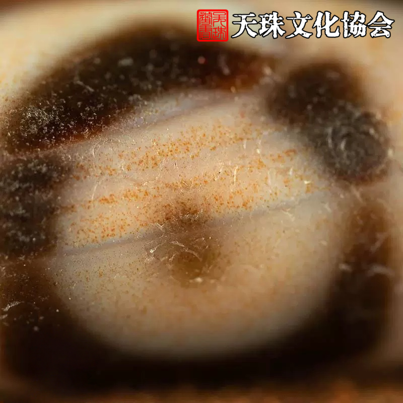 外観から見ると。 その表面には星のような絶景の朱砂点が広がっている。 これらの朱砂点は天珠に独特の美しさを加えただけでなく。 さらに歳月の沈殿と神秘的な力の象徴とされている。 3つの目のトーテムははっきりしていて整っている。 天地の霊気が凝縮されているようだ。