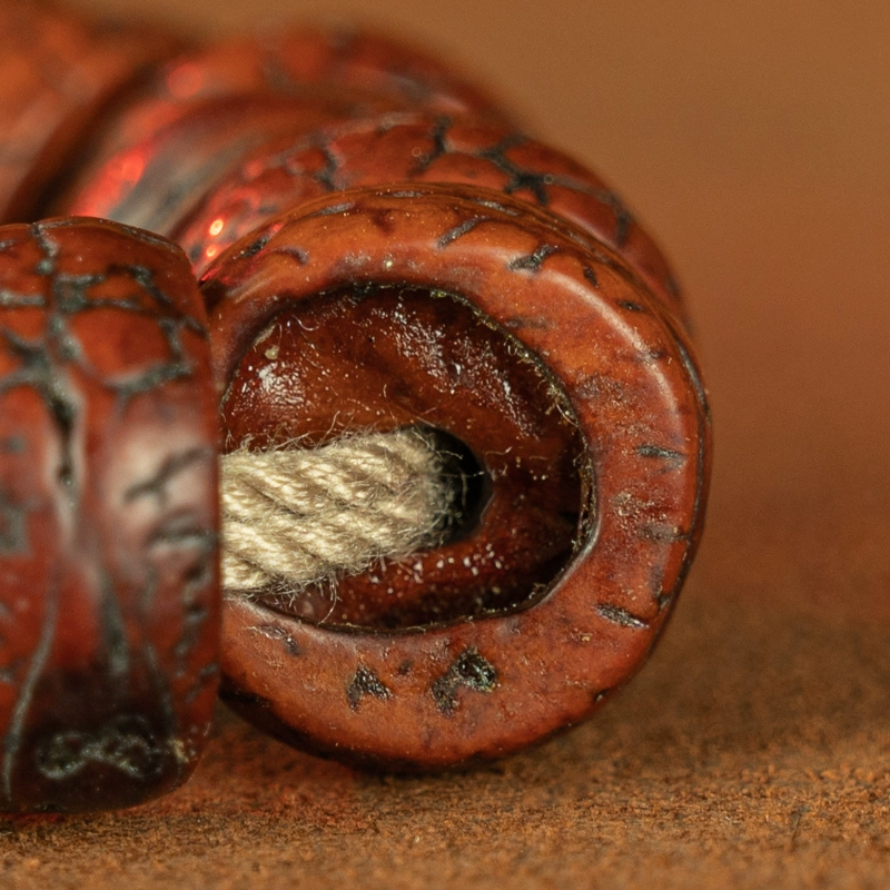 - 樹種と産地: 選択ネパールの老料鳳眼菩提。 樹齢100年以上。 種がふっくらしてしっかりしている。 密度が極めて高い。 経 「クリアクロスカット」 プロセス加工 —— 横方向切断シード。 天然のまま 「鳳凰眼」 もよう (鳳凰のような芽目の瞳) 。 両側を平面にする。 ユニークなドラムボール (薬師ビーズ制) 。 シングルビーズサイズ約 [ちょつけい × あつさ]。 手のひらにフィットする手触り。 呪文を持って捻るのに便利である。